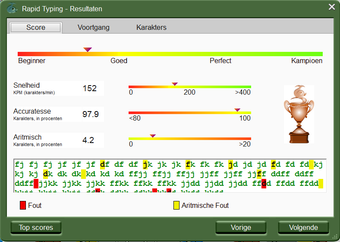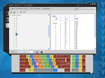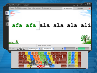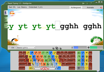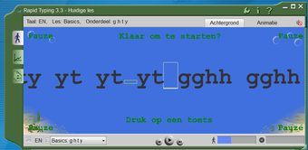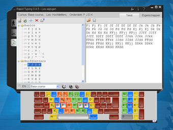 De eerste oefening is redelijk simpel. Je gebruikt vier letters en deze moet je in verschillende volgorde typen. Gaandeweg neemt de moeilijkheid toe en komt het hele toetsenbord aan bod. Na deze oefeningen moet je hele woorden typen en tenslotte hele zinnen. In Rapid Typing maak je ook eenvoudig je eigen trainingssessies.